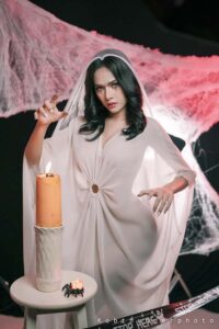 ไม่เพียงแค่นั้นเราไปเจออีกภาพหนึ่งที่น้องไปถ่ายไว้ช่วงปลายปีนี่เอง กับธีมแม่หยัว ซีรีส์ในทีวี ที่น้องขอเกาะกระแสด้วย แต่ไม่ได้มาเล่น ๆ เอาจริงเอาจังมากถ่ายชุดแม่หยัวจัดเต็มมาก สีแดง พร้อมกับเครื่อง